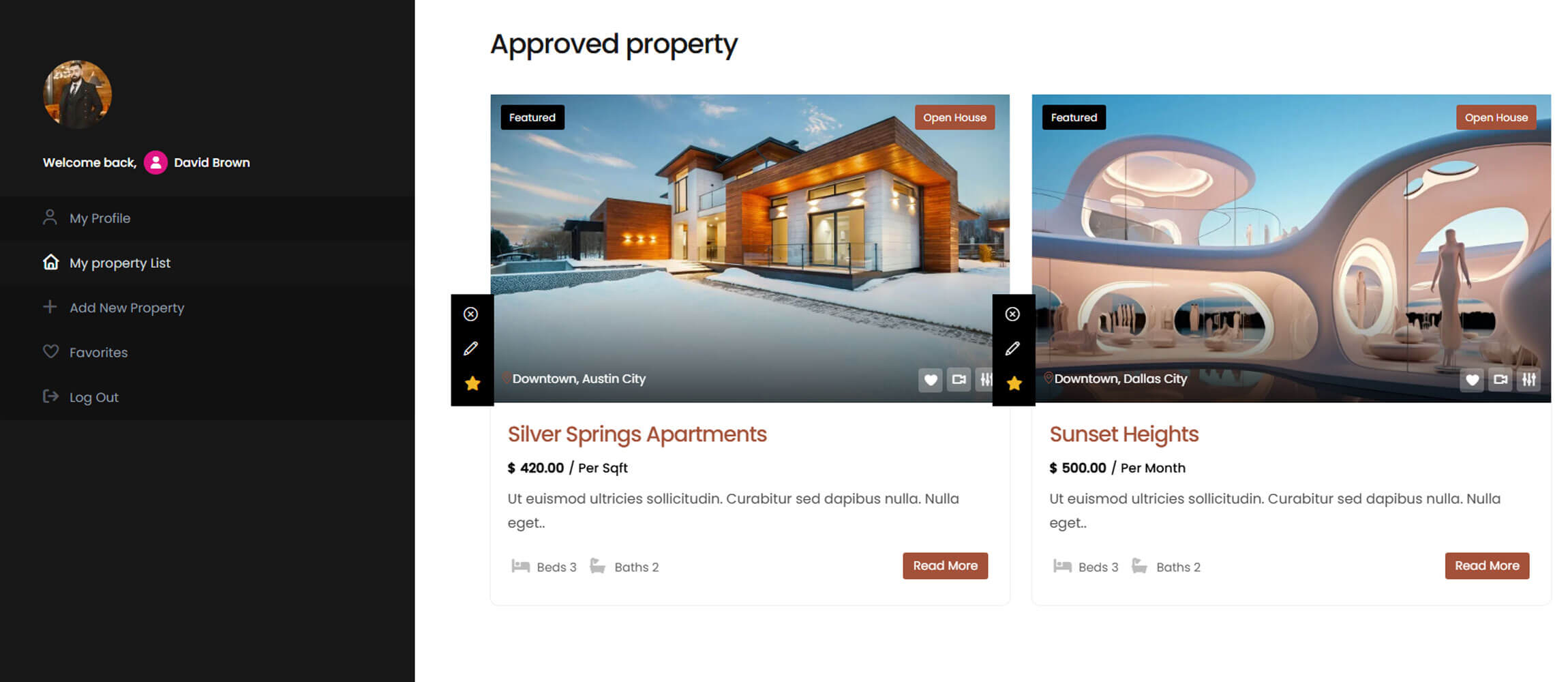 In the Add New Property section, you can create a new property listing. You can enter all the necessary details such as property information, features, floor plans, price, property size, number of rooms, and additional plans. You can also specify the property location, including country, state, city, and area.